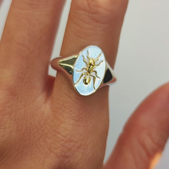 Aquarius Ant Signet Ring | Sterling Silver & Gold Plated