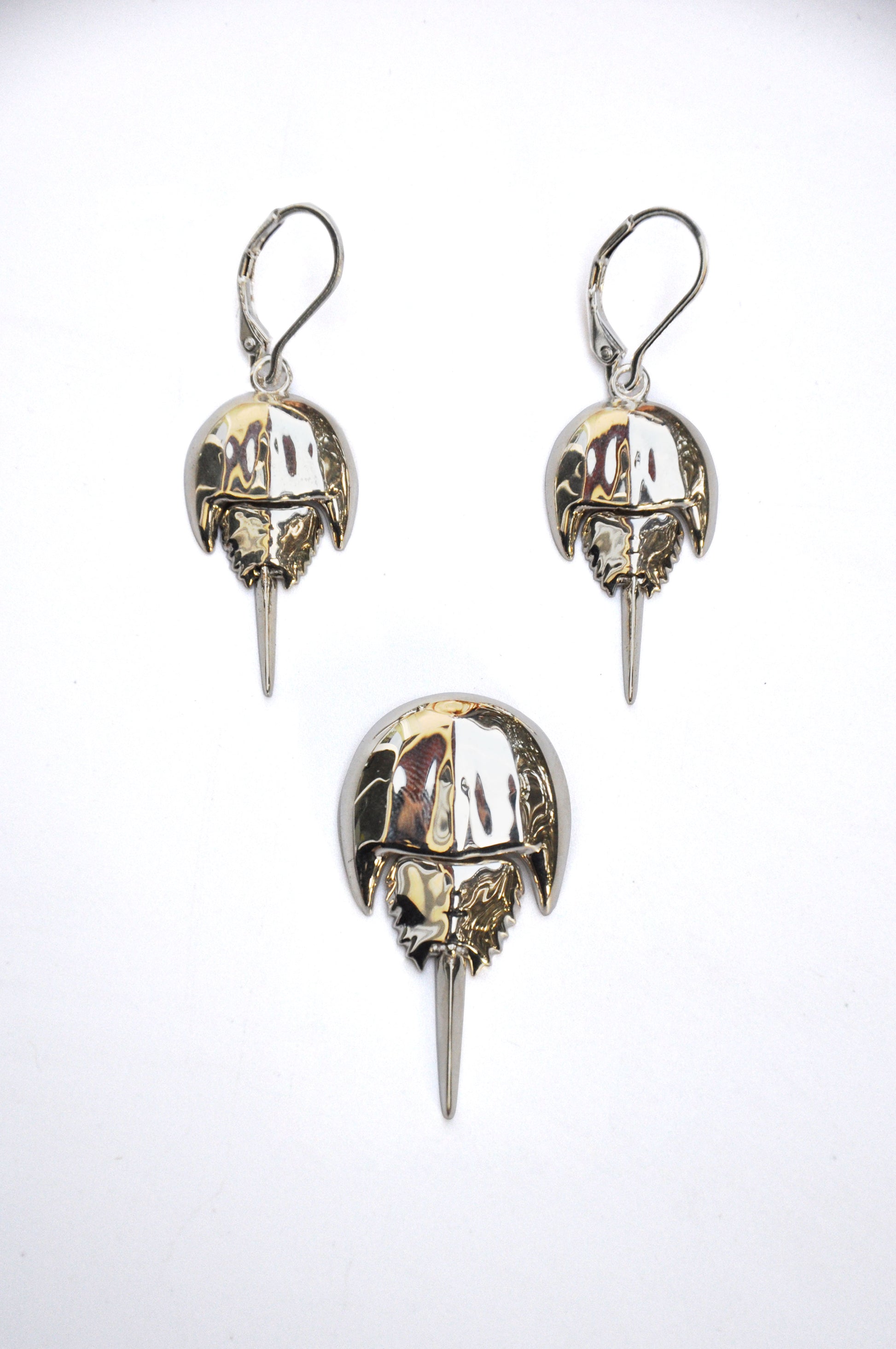 Articulated Horseshoe Crab Pendant – Fossil Necklace in Silver & Gold