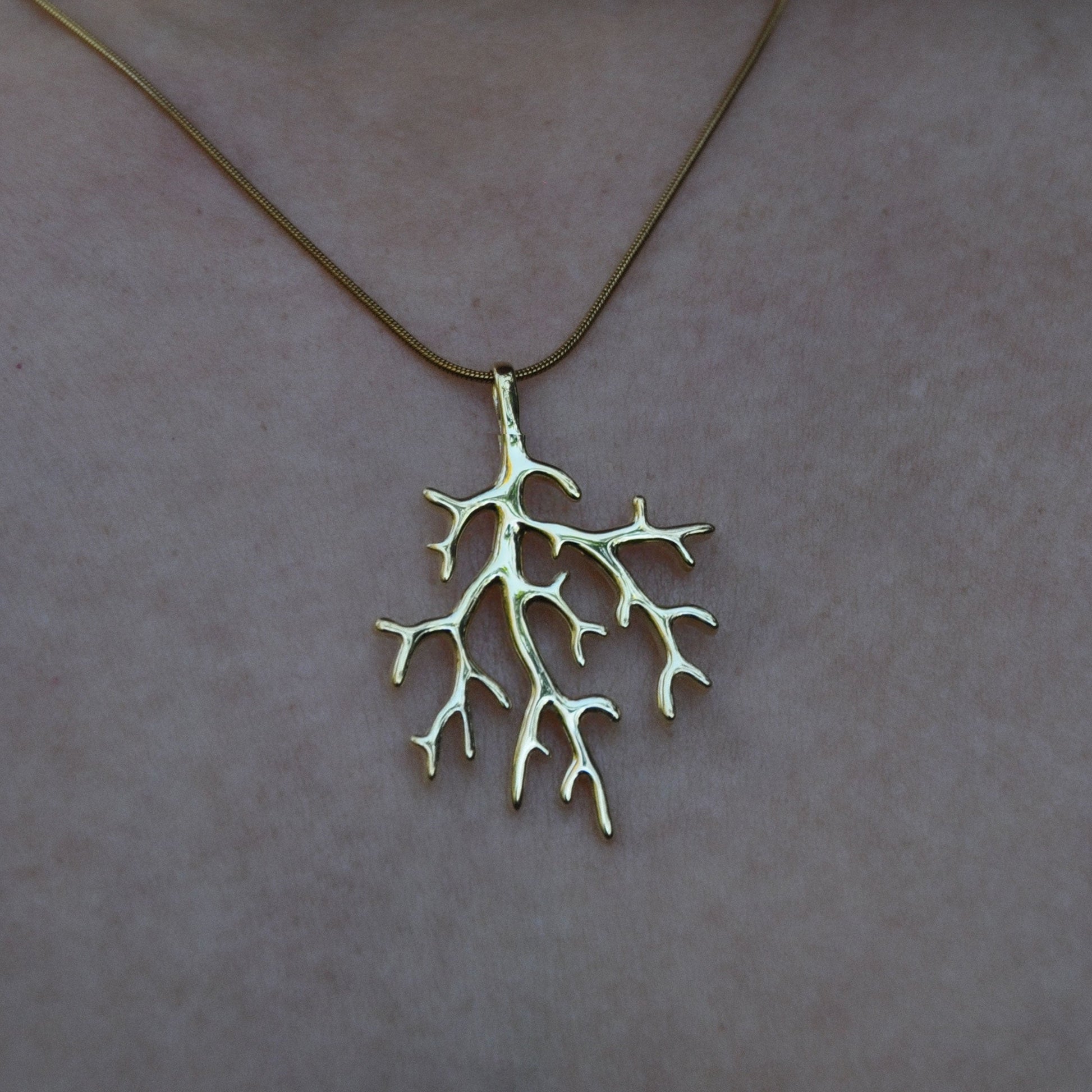 Crafted using a combination of modern 3D printing and ancient lost wax casting methods, the Coral Pendant blends innovation with traditional craftsmanship. Each piece is custom-made and requires three weeks for completion.