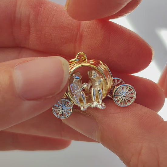 Sterling silver with 14k gold‑plated pumpkin (sterling silver frogs + sterling silver wheels, gold‑plated pumpkin)
