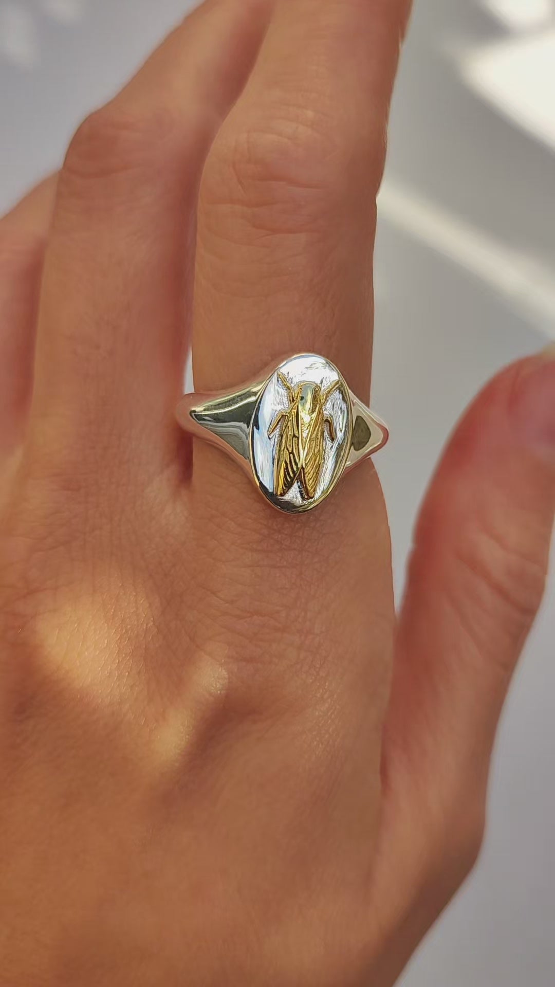 Gemini Cicada Signet Ring | Sterling Silver & Gold Plated
