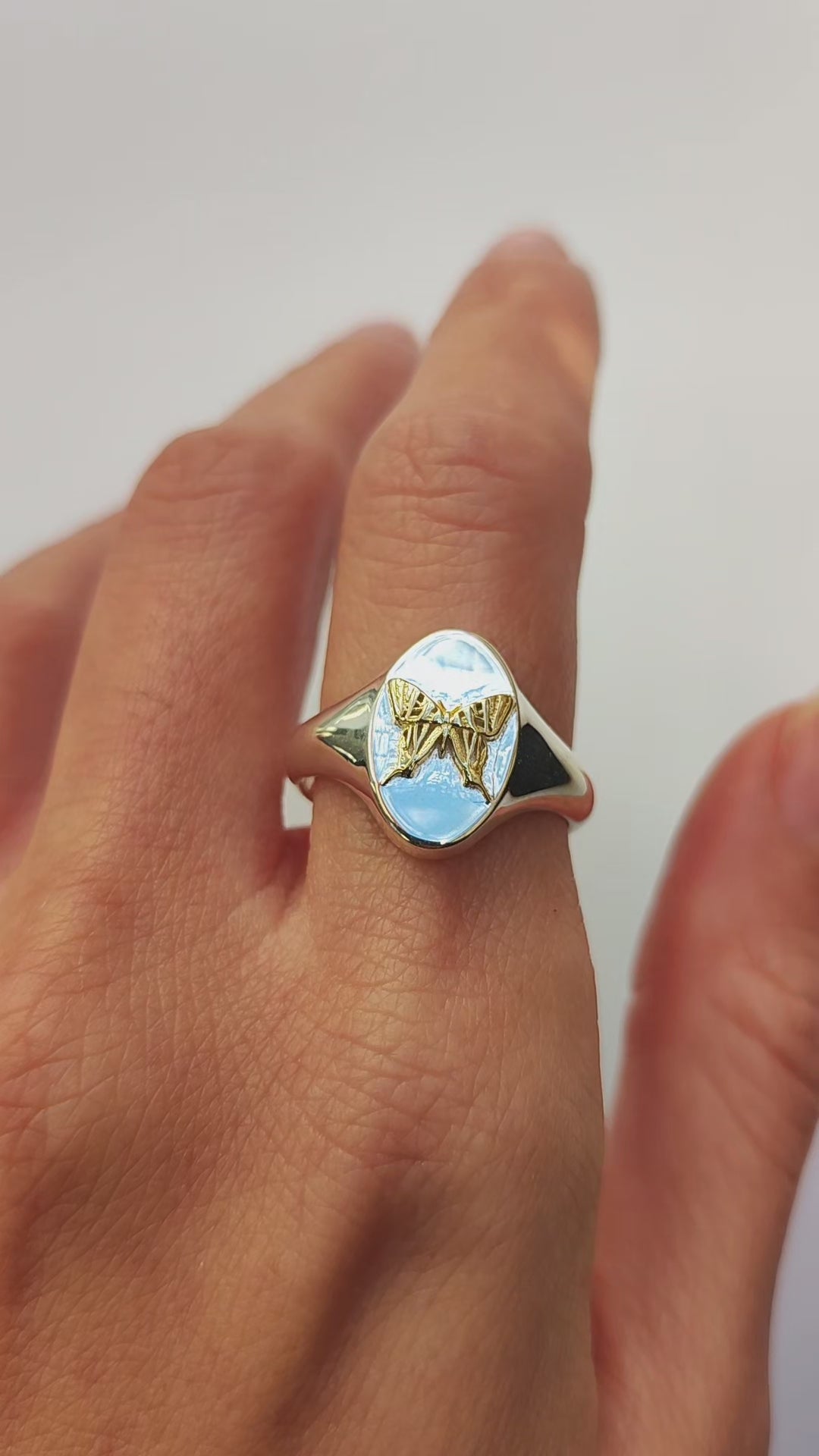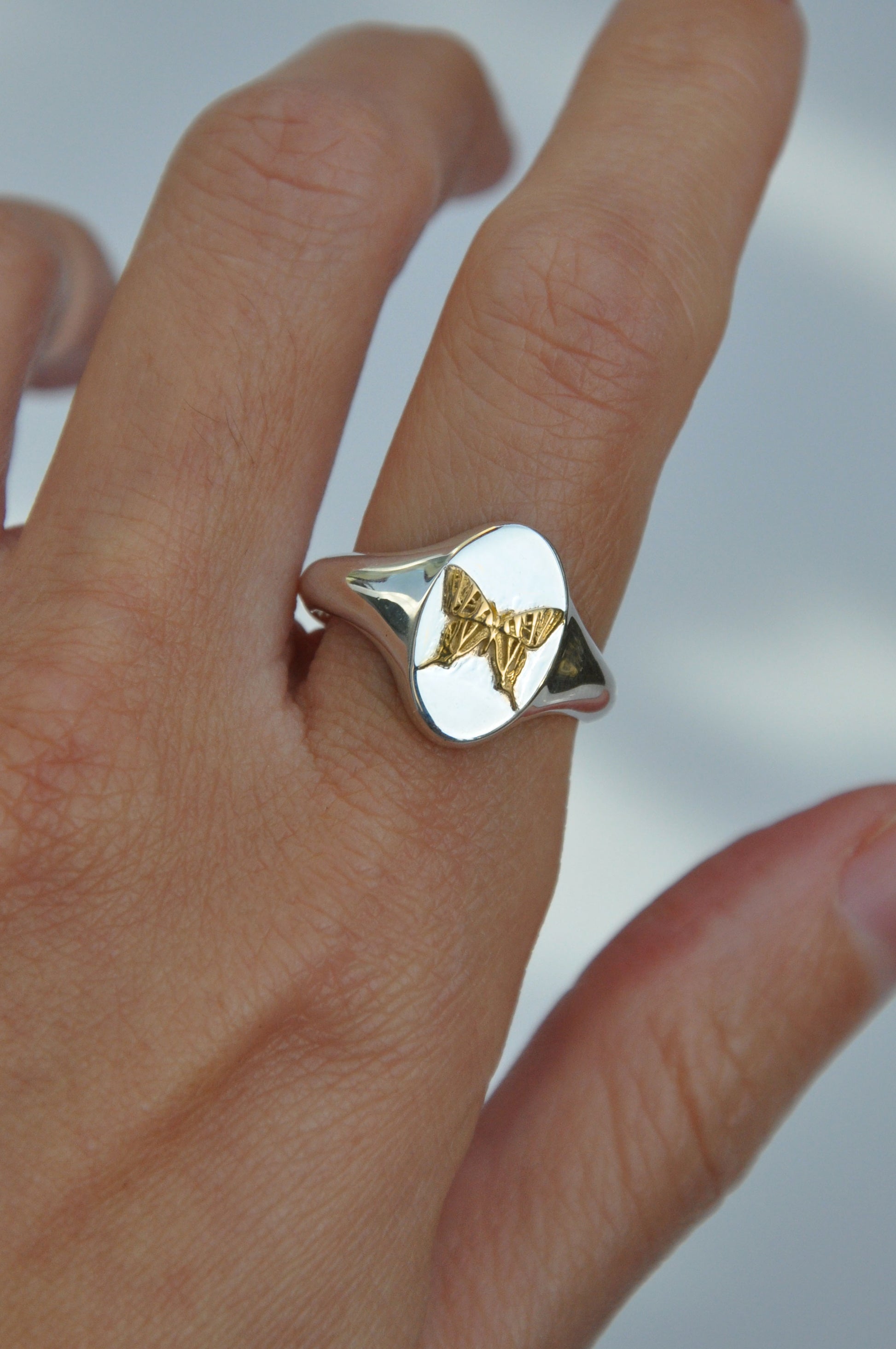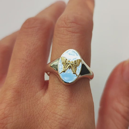 Leo Swallowtail Butterfly Signet Ring | Sterling Silver & Gold Plated
