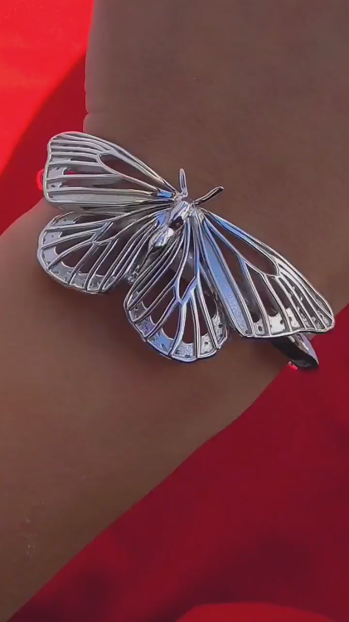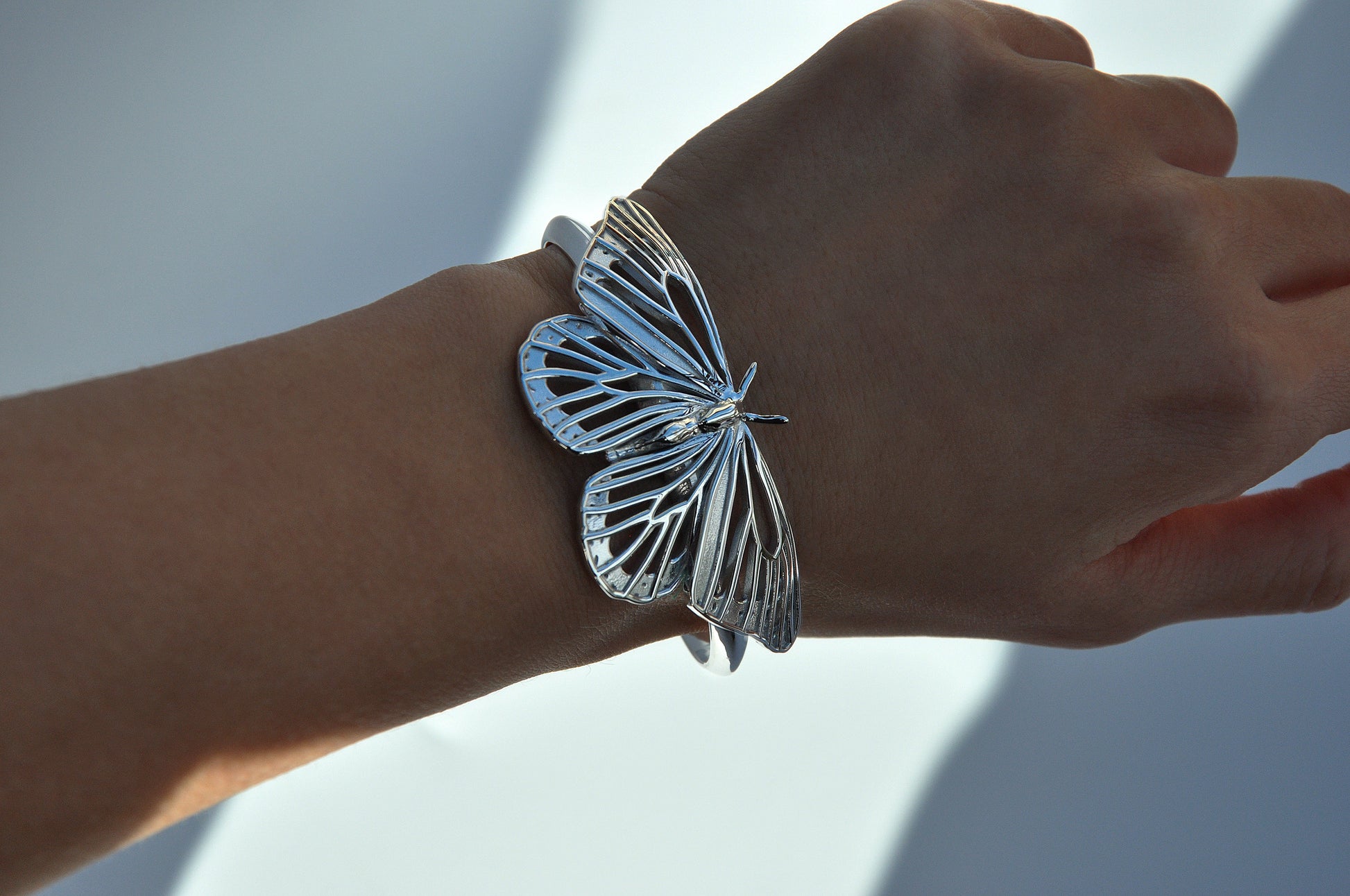 This bracelet features one of the best-known butterfly species, the beautiful monarch butterfly (Danaus plexippus).