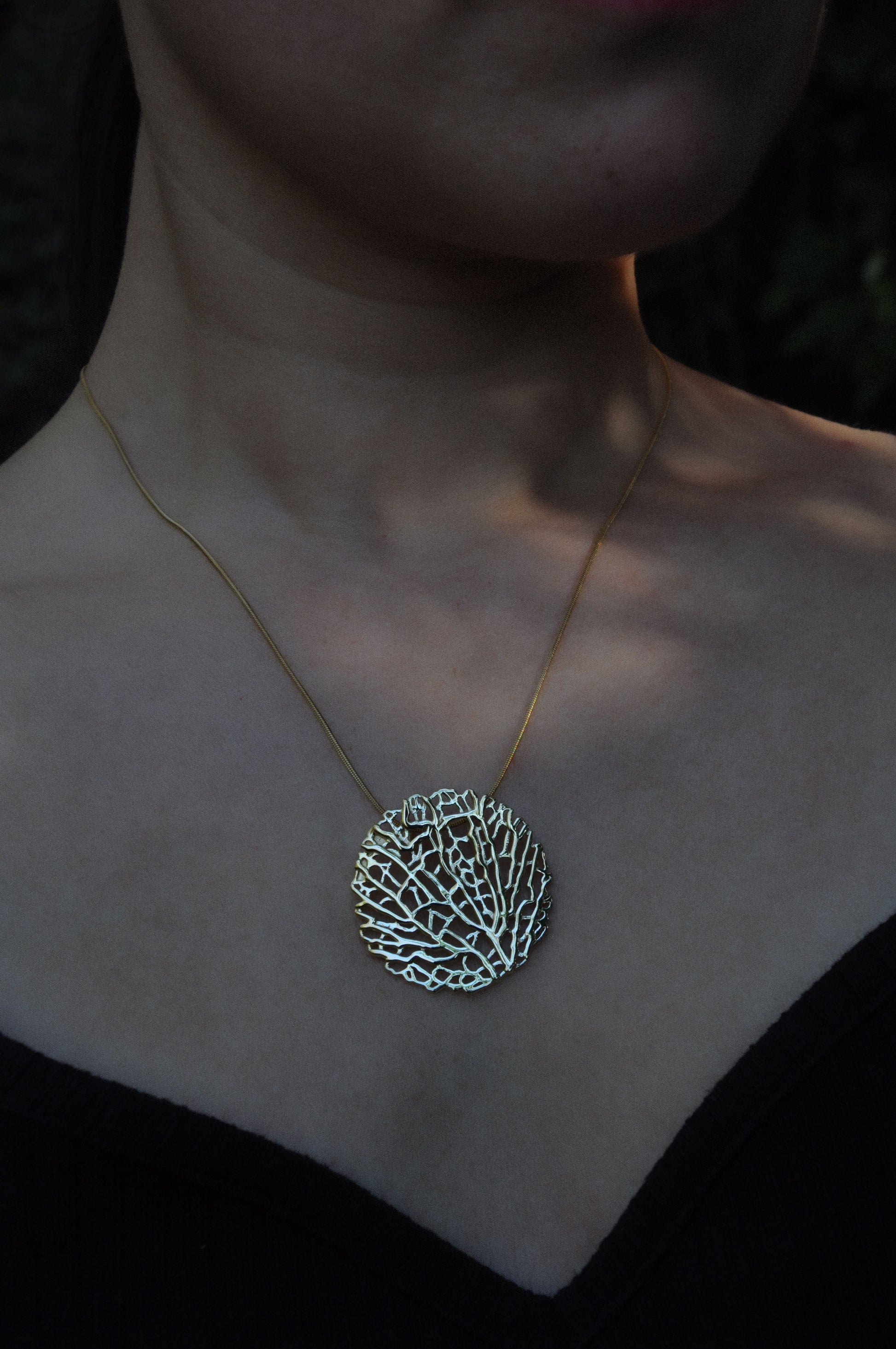 Crafted using a combination of modern 3D printing and ancient lost wax casting methods, the Round Coral Pendant blends innovation with traditional craftsmanship. Each piece is custom-made and requires three weeks for completion.