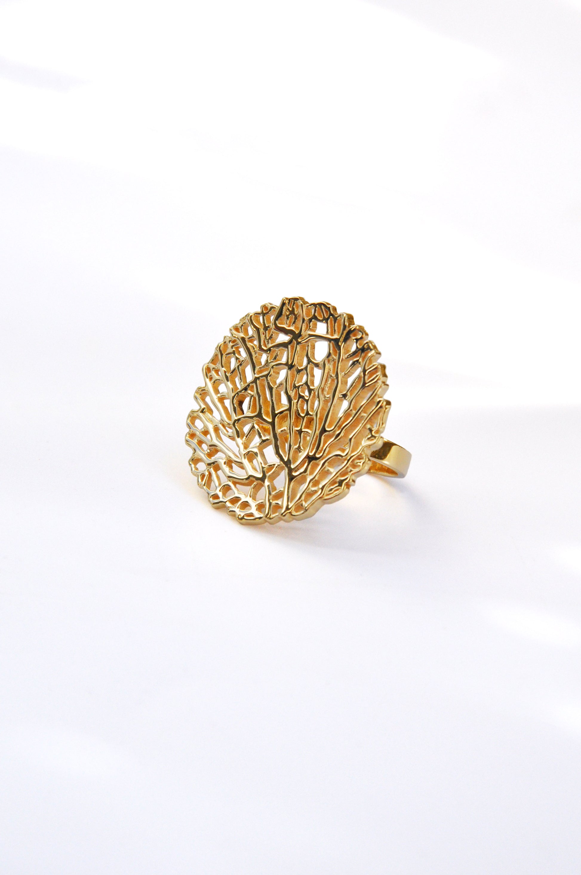 Created in collaboration between Anna Reikher and Meredith Woolnough, the Round Coral Ring is inspired by the radial growth patterns found in coral formations. These underwater structures expand outward in quiet symmetry, forming intricate networks that support vibrant marine life. This design captures that geometry — a tribute to balance, resilience, and natural form.