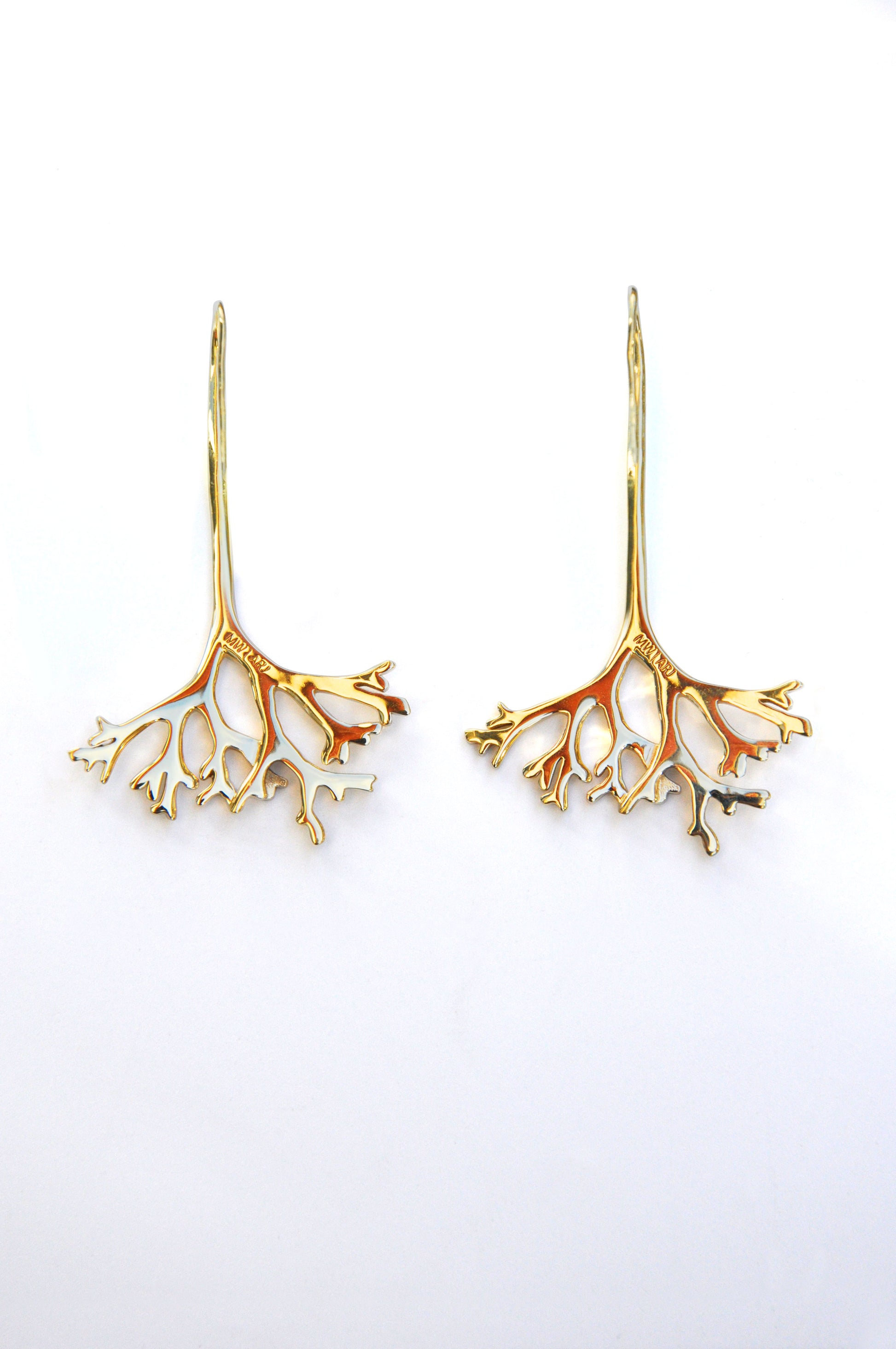 Created in collaboration between Anna Reikher and Meredith Woolnough, the Seaweed Drop Earrings are inspired by the flowing forms of underwater vegetation. Seaweed drifts gently with the tide, its fronds swaying in quiet rhythm. This design captures that graceful movement — a tribute to softness, strength, and the elegance of marine life.