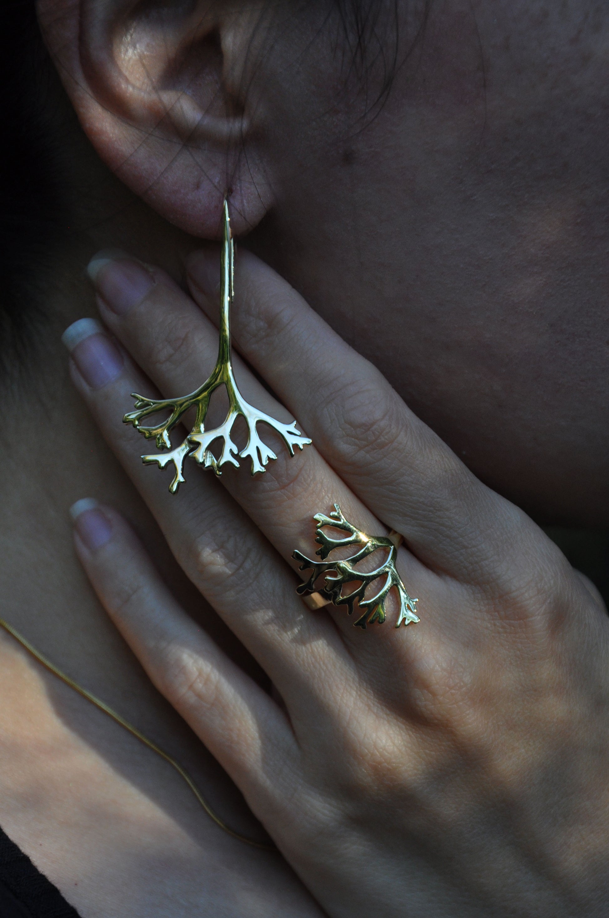 Crafted using a combination of modern 3D printing and ancient lost wax casting methods, these earrings blend innovation with traditional craftsmanship. Each pair is custom-made and requires three weeks for completion.