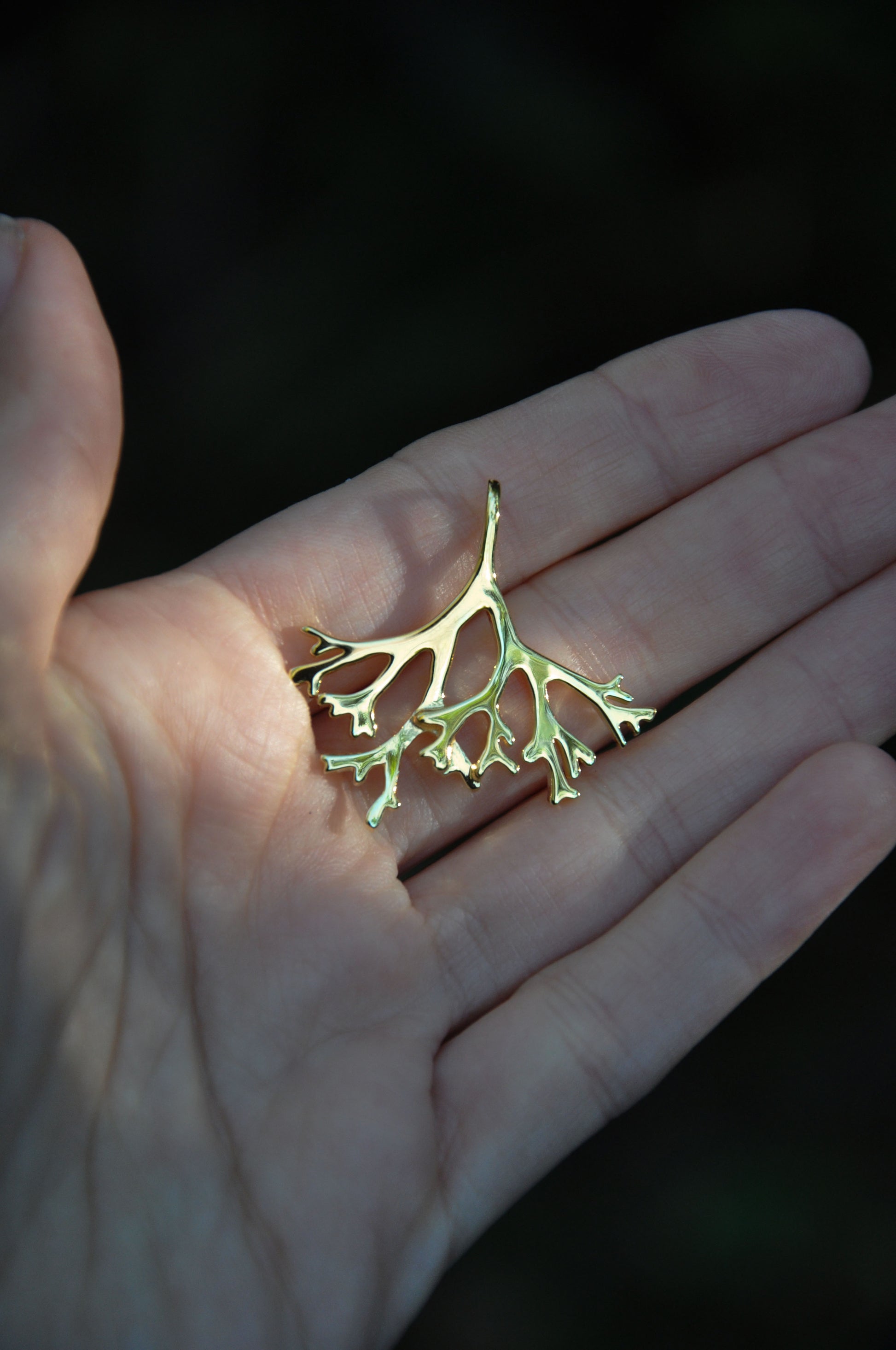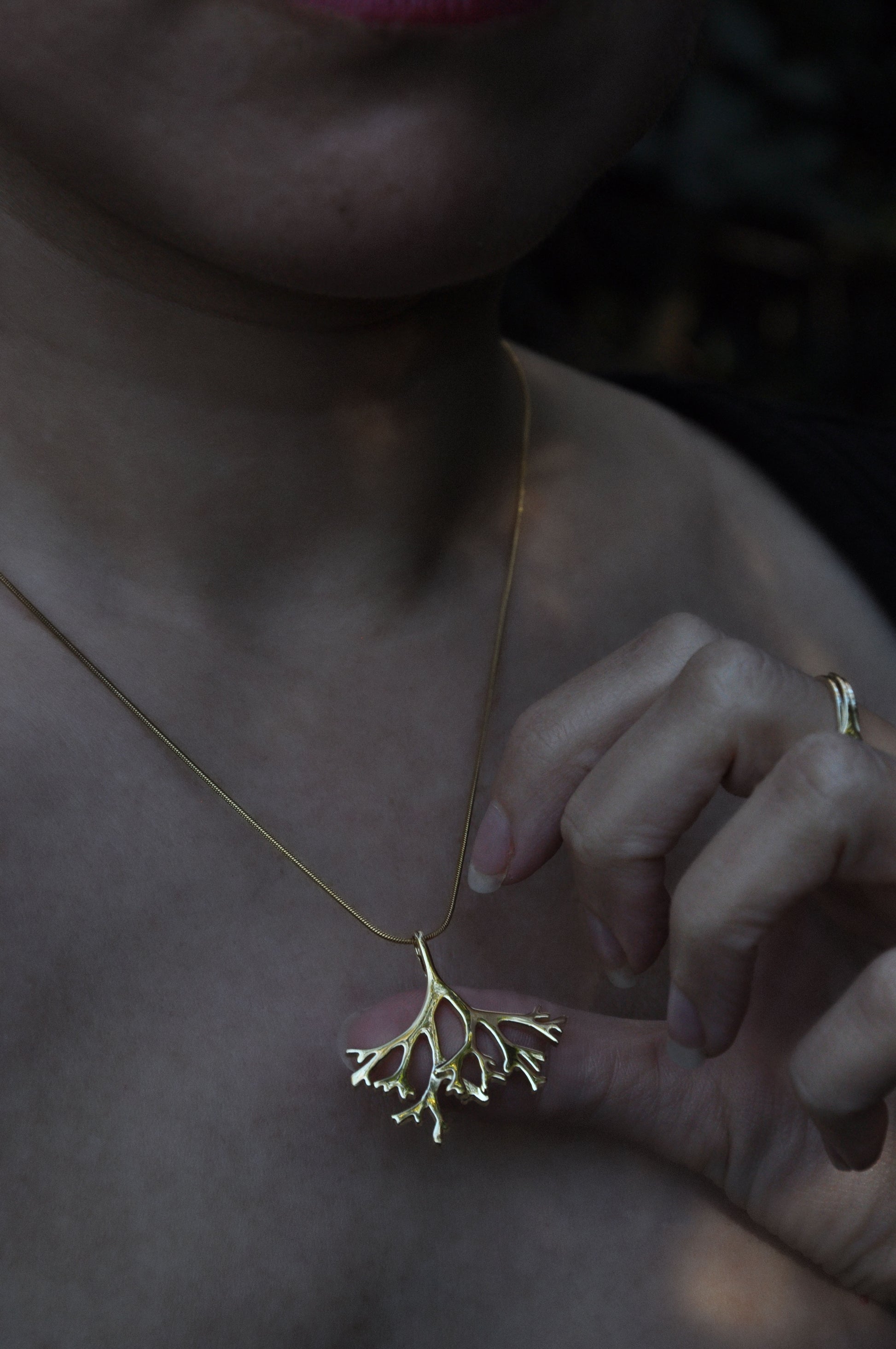 Crafted using a combination of modern 3D printing and ancient lost wax casting methods, the Seaweed Pendant blends innovation with traditional craftsmanship. Each piece is custom-made and requires three weeks for completion.