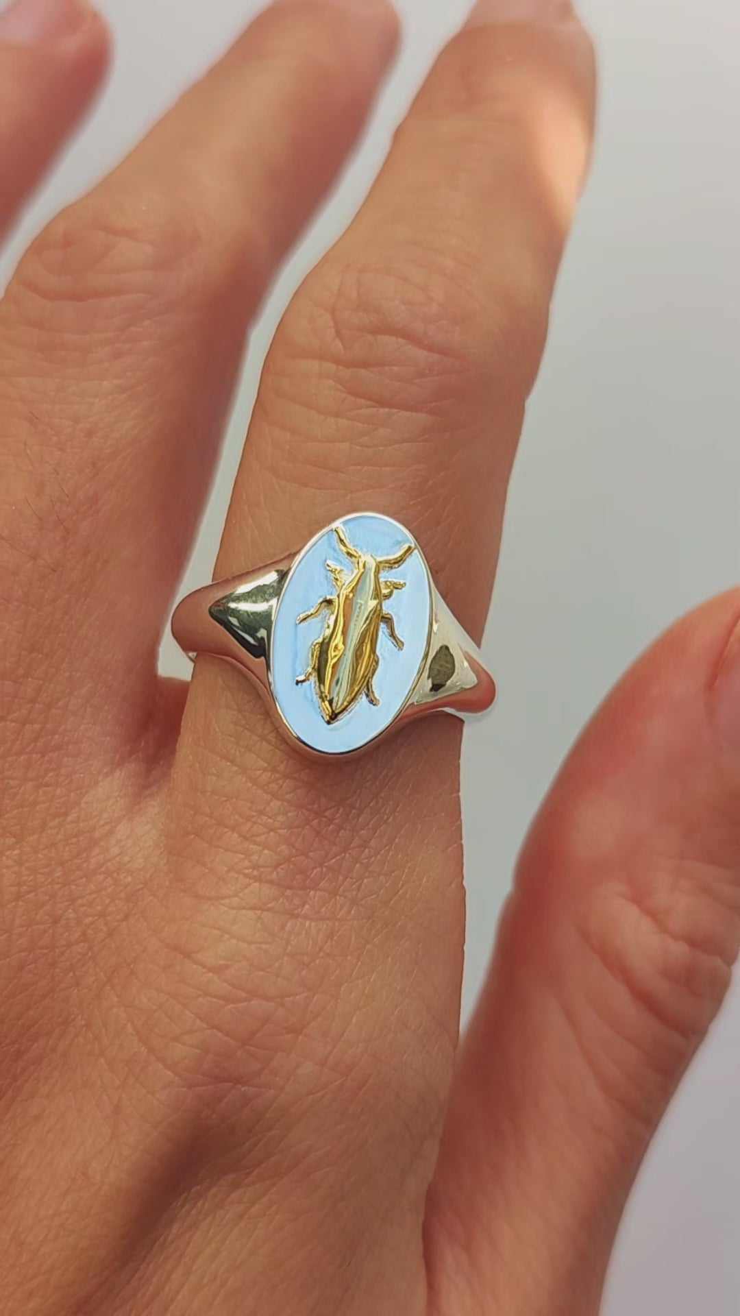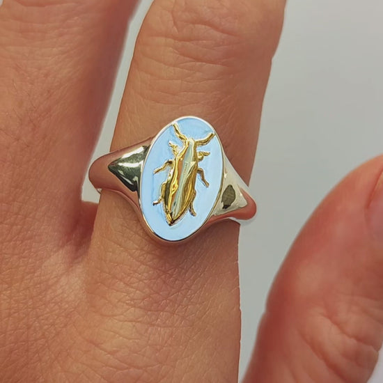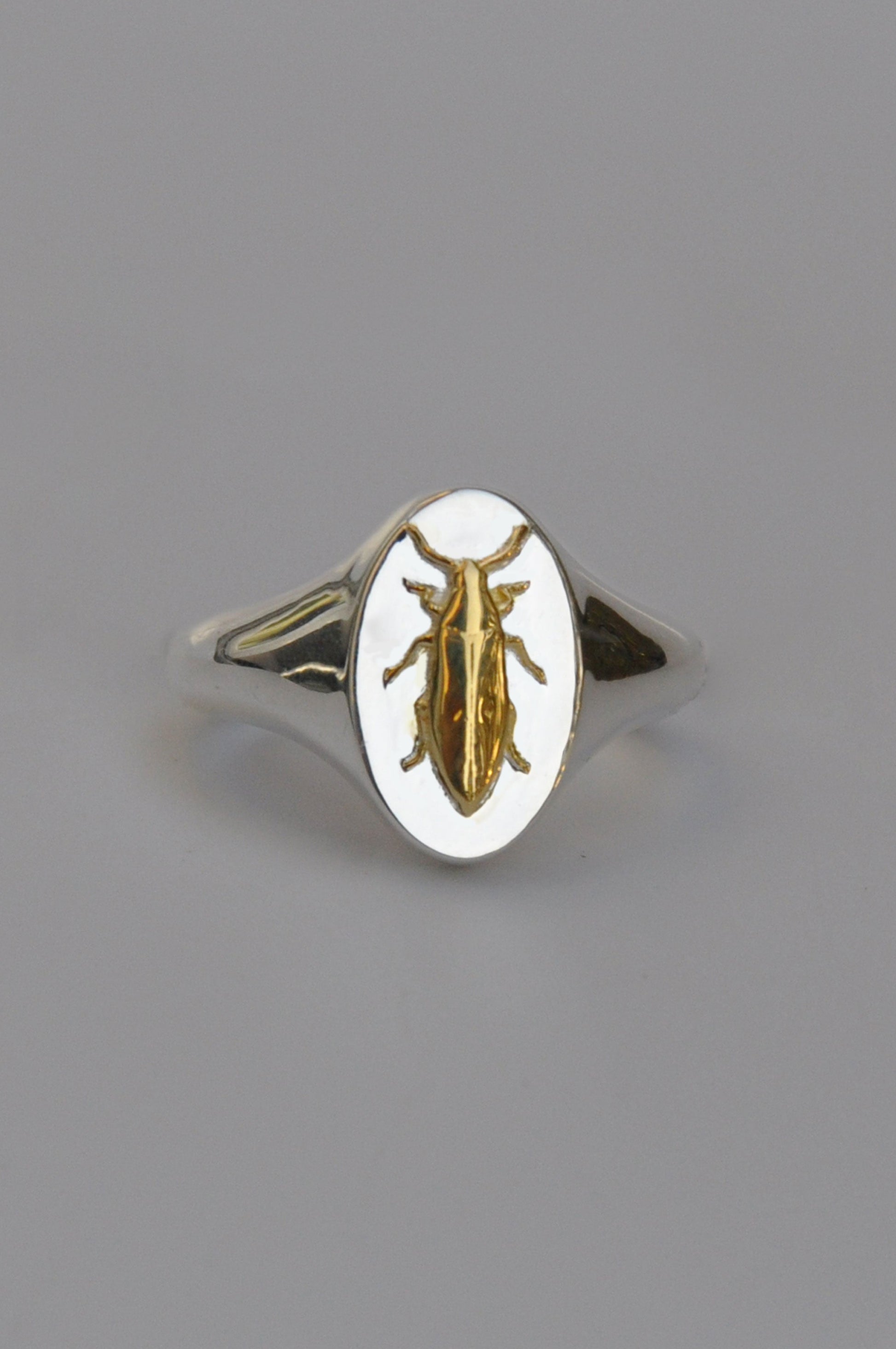 Taurus Jewel Beetle Signet Ring | Sterling Silver & Gold Plated