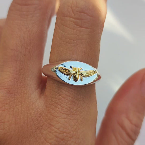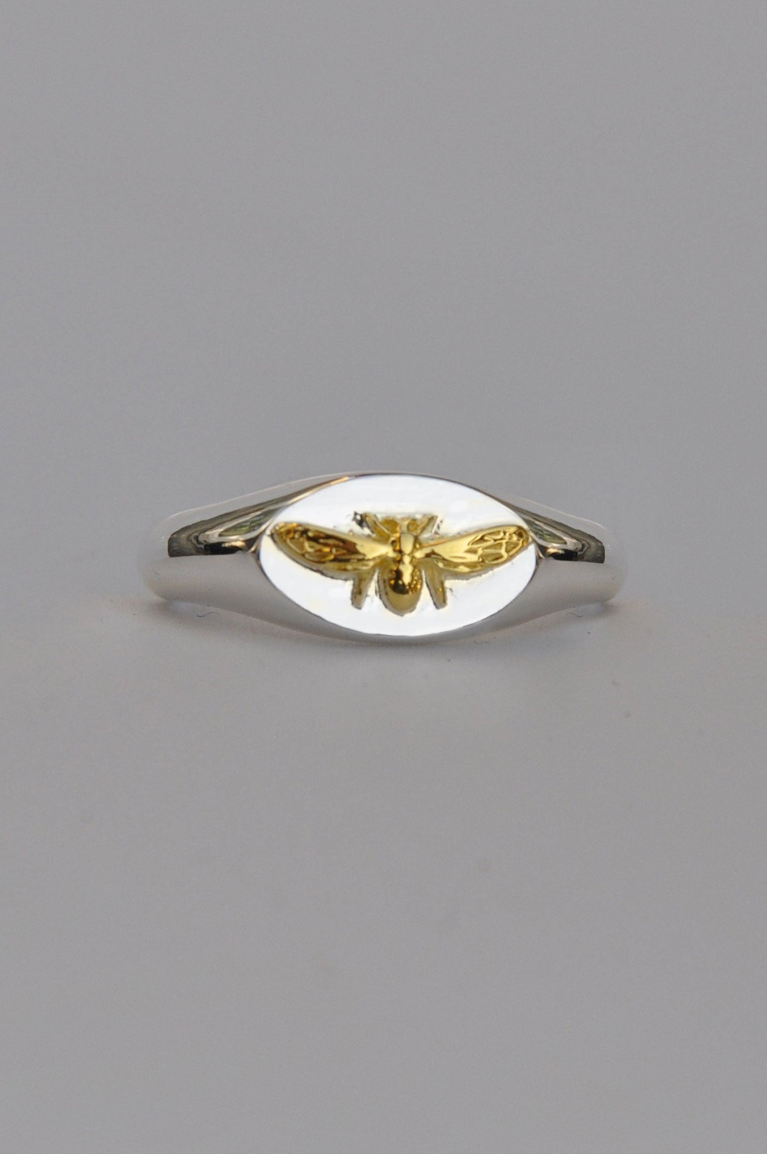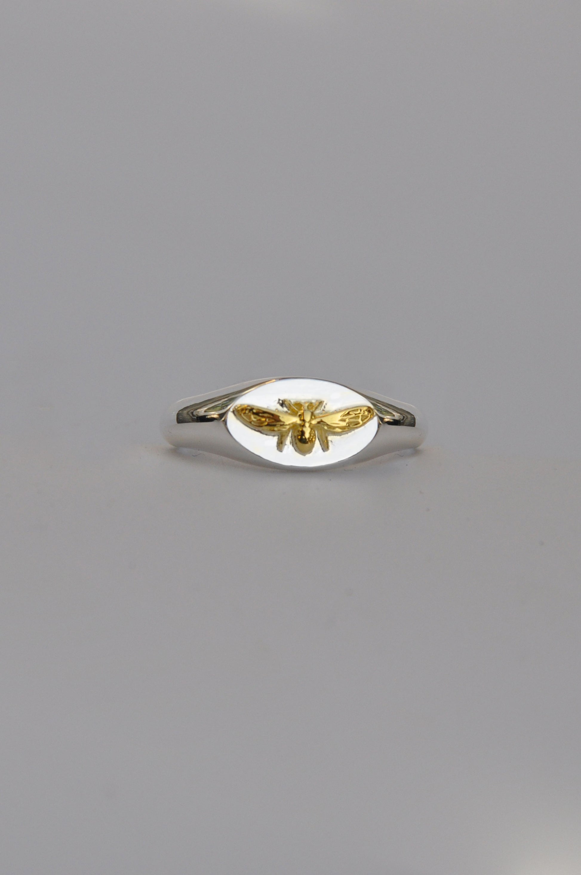 Virgo Bee Signet Ring | Sterling Silver & Gold Plated