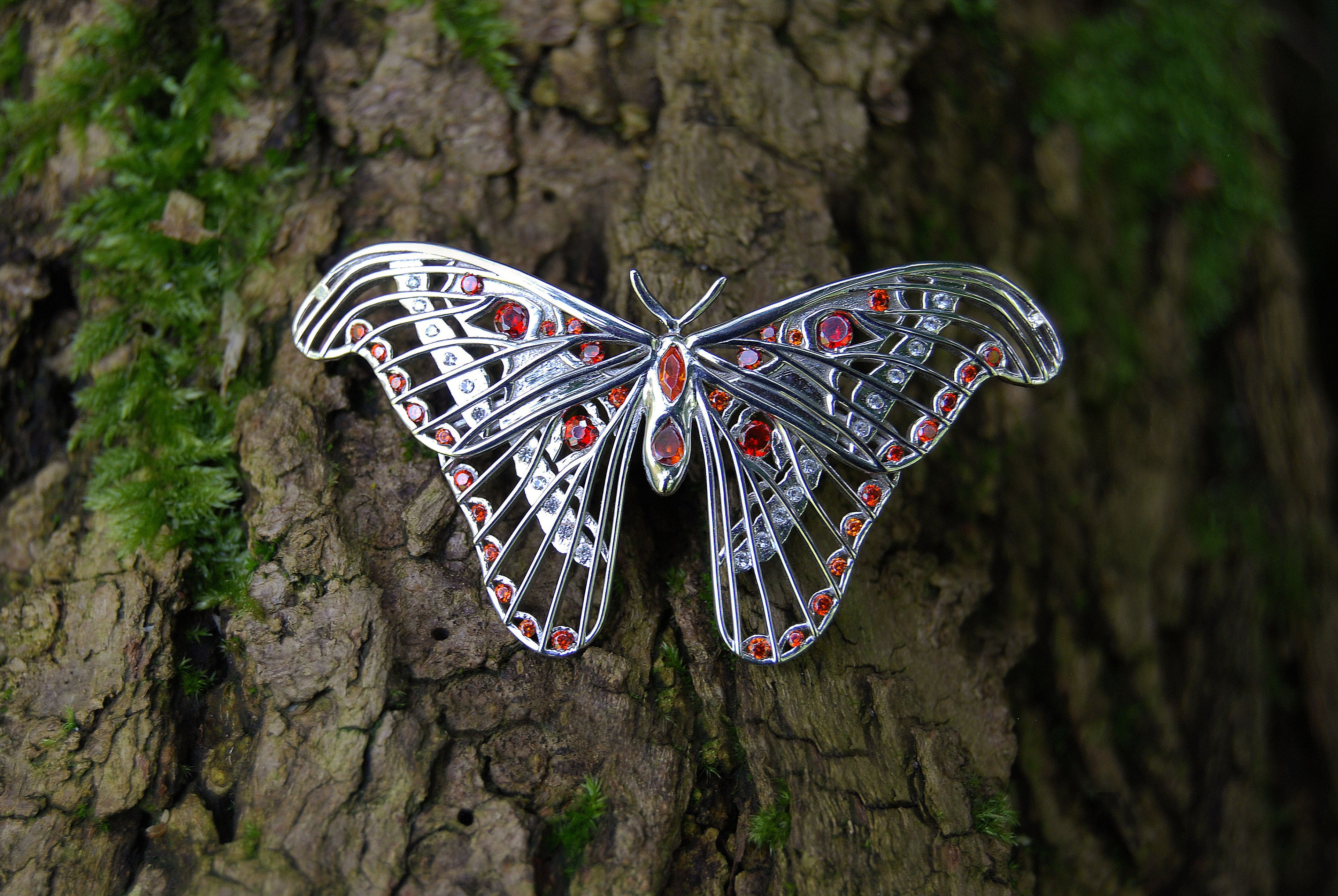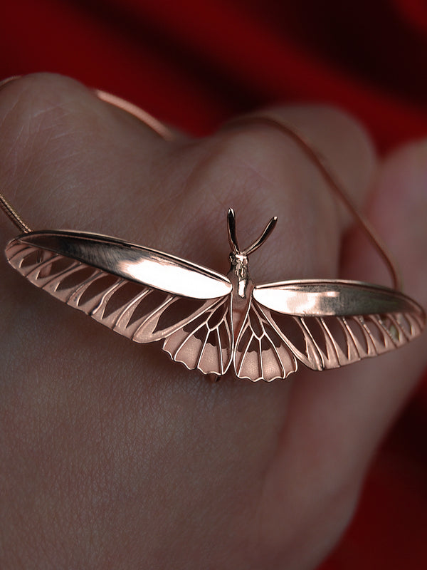 Jeweled Tiger Moth Pendant – Fantasy Moth Necklace in Sterling Silver